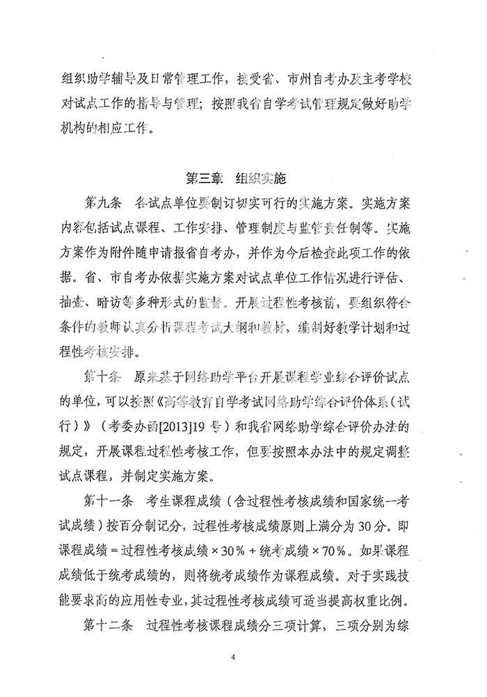湖南省高等教育自学考试课程过程性考核工作暂行办法的通知