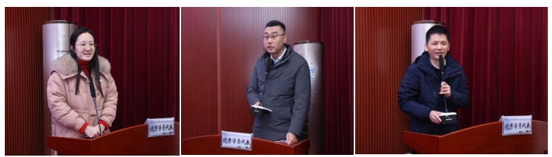 本次结业仪式表彰了研修课程学习阶段的优秀学员,刘英姿副院长宣读优秀学员名单并颁奖。研修班优秀学员代表刘珍、卢达泳、秦岳分别在结业仪式上发言,分享了一年半以来的学习收获,并对学校及各位老师表示感谢。