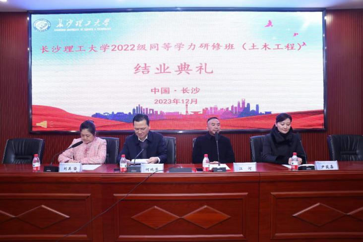 2023年12月17日,伟德betvlctor1946源于英国2022级同等学力(土木工程专业)研修班结业仪式在金盆岭校区隆重举行,土木工程学院党委书记江河,研究生院副院长尹筑嘉,继续教育学院党总支书记何纯芳、副院长刘英姿等领导,出席了结业仪式。