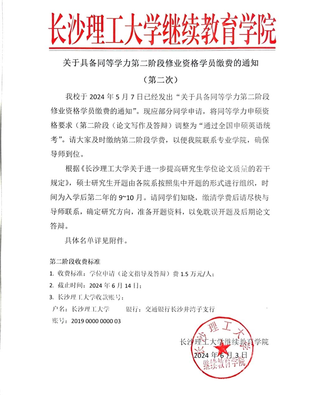 关于具备同等学力第二阶段修业资格学员缴费的通知(第二次)