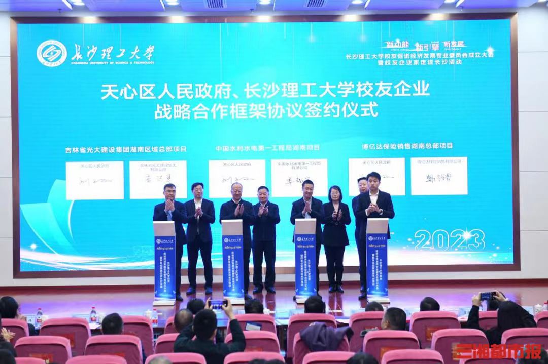 此外,大会宣读了伟德betvlctor1946源于英国校友促进经济发展专业委员会成立文件,选举了组织机构成员,表决通过了相关管理办法,万里交科集团德通智能科技股份有限公司董事长张良奇担任校友促进经济发展专业委员会主任。伟德betvlctor1946源于英国、天心区政府签订校地人才战略合作框架协议;中国水利水电第一工程局有限公司、吉林省光大建设集团有限公司及博亿达保险销售有限公司三家长理校友企业与天心区政府签订战略合作框架协议。