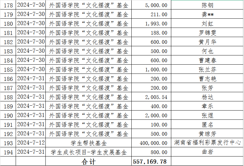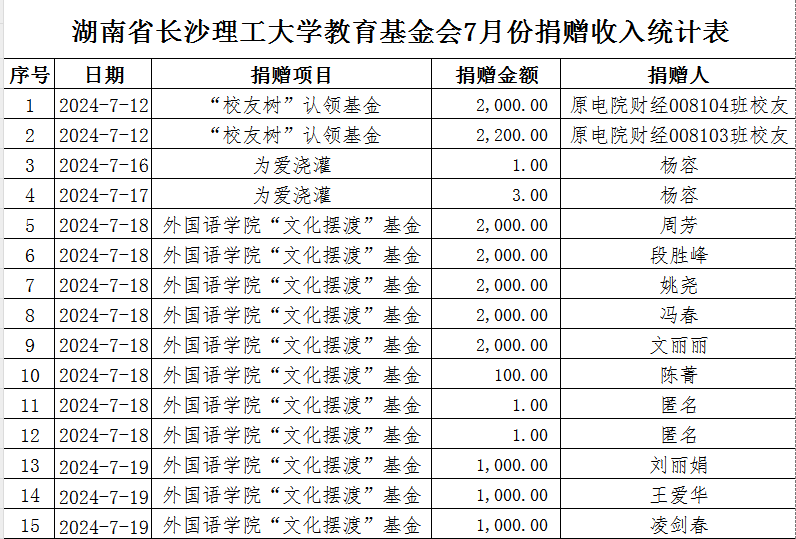 湖南省伟德betvlctor1946源于英国教育基金会2024年7月捐赠收入表