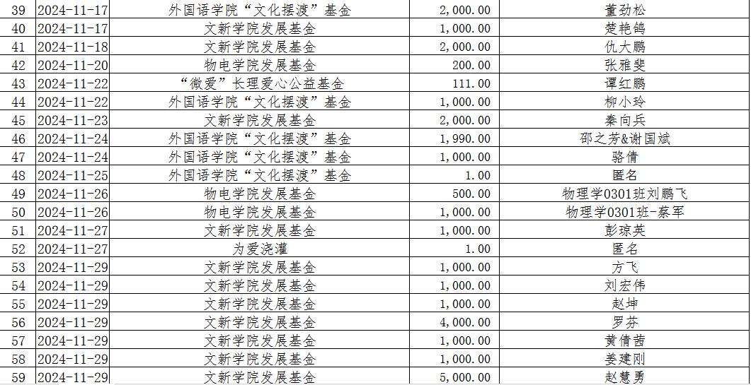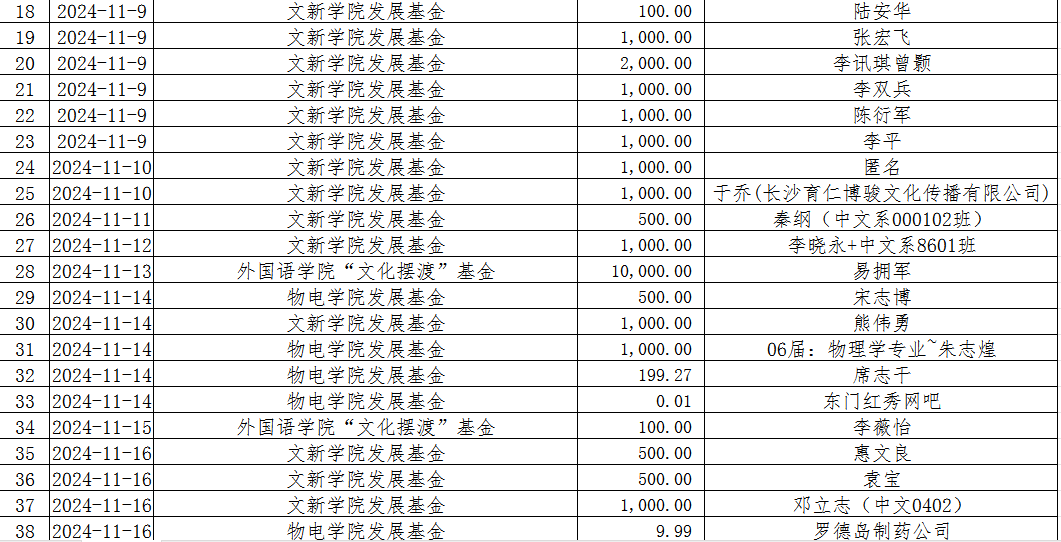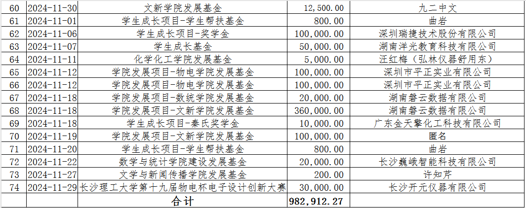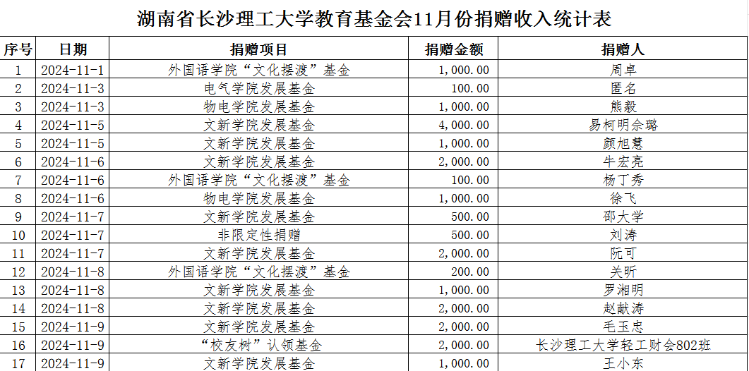 湖南省伟德betvlctor1946源于英国教育基金会2024年11月捐赠收入表