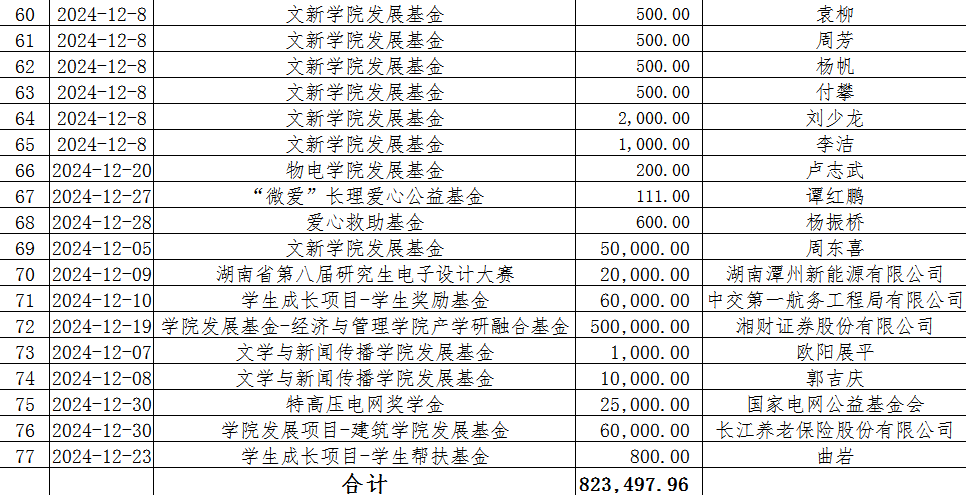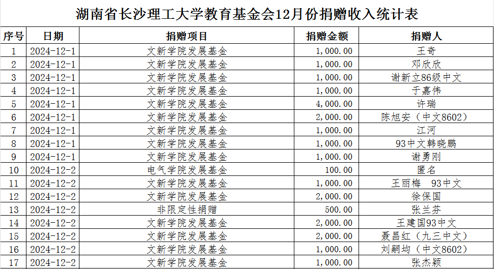 湖南省伟德betvlctor1946源于英国教育基金会2024年12月捐赠收入表