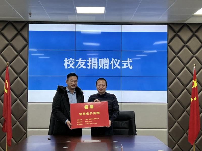 1月12日上午,校友企业捐赠仪式暨交流座谈会在云塘校区图书馆九楼911会议室举行。广东柯视丽科技有限公司董事长刘振亚、总经理赵京,校友中心主任郑延恒、校友联络专干王静琦,信息化中心主任王威、副主任高捷等参加座谈。校友刘振亚为学校捐赠一套智慧电子黑板,安装在云塘校区综合教学楼C301室,用于学校信息化教学,这是该校友第三次为学校捐赠电子教学设备。王威感谢校友捐赠并简单介绍了学校信息化工作情况和未来发...