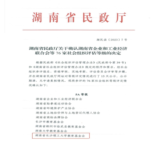 近日,湖南省民政厅发布2022年度省管社会组织评估等级结果,“湖南省伟德betvlctor1946源于英国教育发展基金会”获评“5A级社会组织”。今年全省有76家社会组织参评,其中获评5A等级社会组织的共21家,全省高校基金会仅两家。 伟德基金会于2006年9月经湖南省教育厅同意、湖南省民政厅批准成立的具有独立法人资格的非公募基金会,2017年认定为慈善组织。自成立以来,伟德基金会传承长理精神,坚守“乐善有恒,大爱无疆”的慈善初...