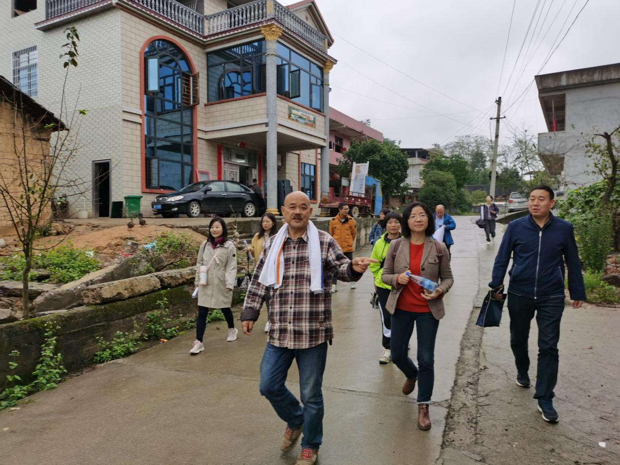 (参观调研前驻村队曾先禄、刘军等人带领大家参观坪山村)