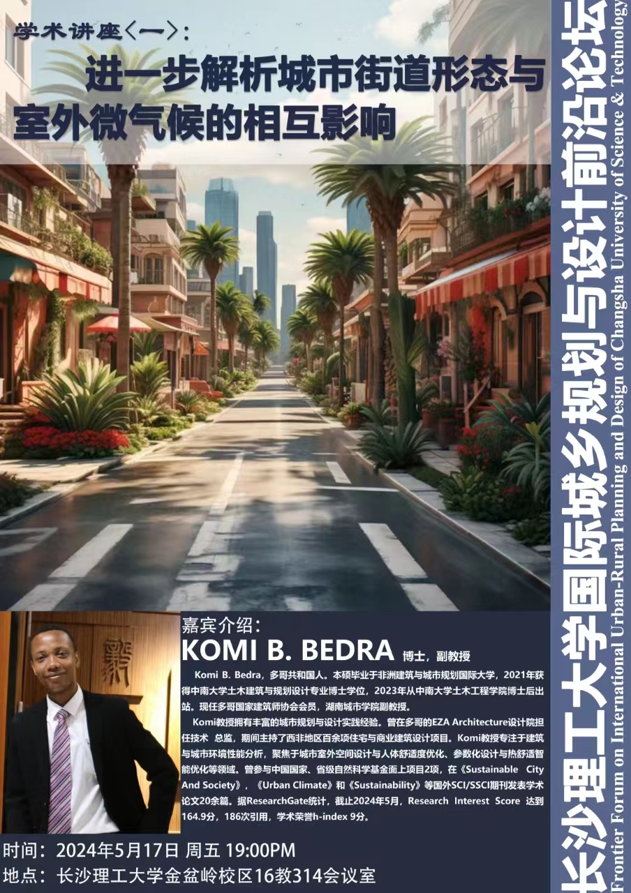 报告人职称/职务及学术头衔:副教授,博士,多哥国家建筑师协会会员,中南大学博士后