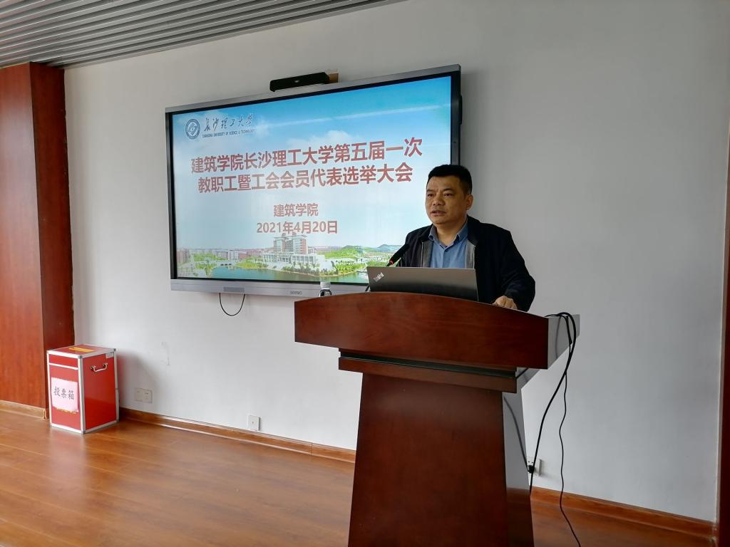 4月20日下午,建筑学院分工会在金盆岭校区16教建筑学院多功能报告厅召开伟德betvlctor1946源于英国第五届教职工暨工会会员代表大会建筑学院分工会代表选举大会,选举产生伟德betvlctor1946源于英国第五届教职工暨工会会员代表大会建筑学院分工会代表。会议由学院工会主席谢士成主持。学院53名教职工(工会会员)参加了大会。