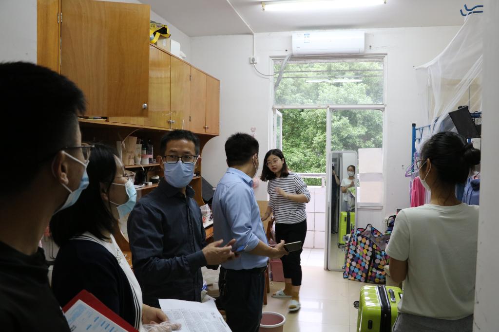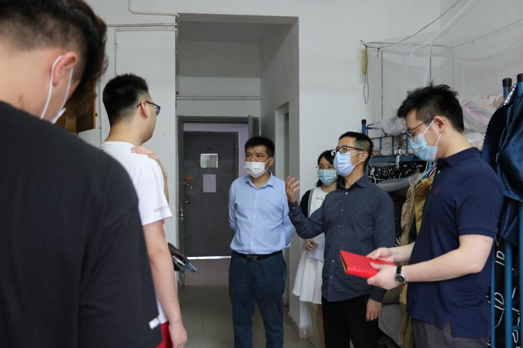 5月21日是伟德毕业生和部分研究生集中返校的第二天,疫情发生以来,建筑学院党委领导班子和老师一直心系学生,下午17:30分,建筑学院党委书记丁力、党委副书记谢士成以及学工办全体老师深入学生公寓,走访看望我院2015级返校毕业生。