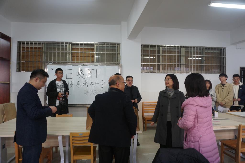 距2022年全国硕士研究生招生考试还有30天,为鼓励考研学生增强信心,积极备考,12月25日下午,建筑学院党委书记熊鹰、党委副书记李家春、副院长周晨、何川,学工办全体辅导员一同走访了考研自习室,看望慰问复习备考的考研学子。