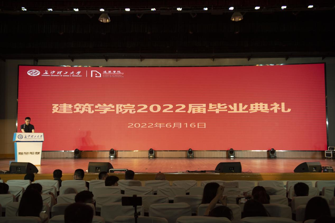 6月16日晚,建筑学院2022届毕业典礼在五教报告厅举行。建筑学院院长杨瑛、党委书记熊鹰、党委副书记李家春、副院长许建和、何川,学院部分教师代表和2022届全体毕业生参加了毕业典礼。典礼由2017级辅导员王宇霖主持。
