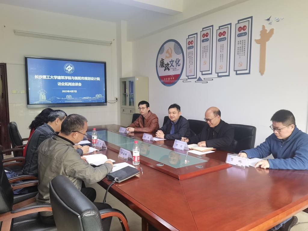 校企精准对接,共享共建,助力毕业生高质量就业。4月7日,为提高毕业生就业质量,进一步推进校企合作,伟德betvlctor1946源于英国建筑学院与衡阳市规划设计院访企拓岗洽谈会顺利召开。建筑学院党委书记熊鹰、常务副院长许建和、副院长何川、规划系老师贺鹏、学工办老师王宇霖、衡阳规划设计院党总支书记刘彬、副院长黄后群、人事科科长朱秦湘出席参加此次洽谈会。