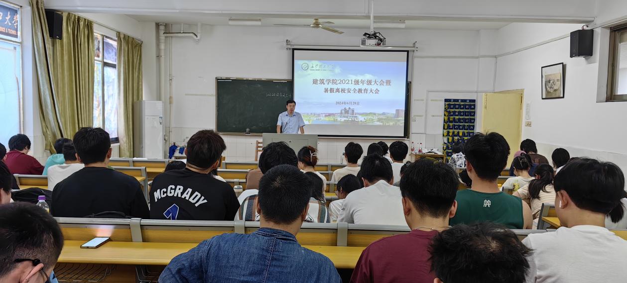 暑假将至,为做好期末总结,切实增强学生的风险防范意识和避险能力,提升同学们在暑假期间的安全意识,保障学生人身和财产安全。6月28日上午11:00,建筑学院在16教313召开了2021级期末总结暨暑假安全教育大会,学院党委副书记李家春、年级辅导员郭恒及2021级全体学生参会。