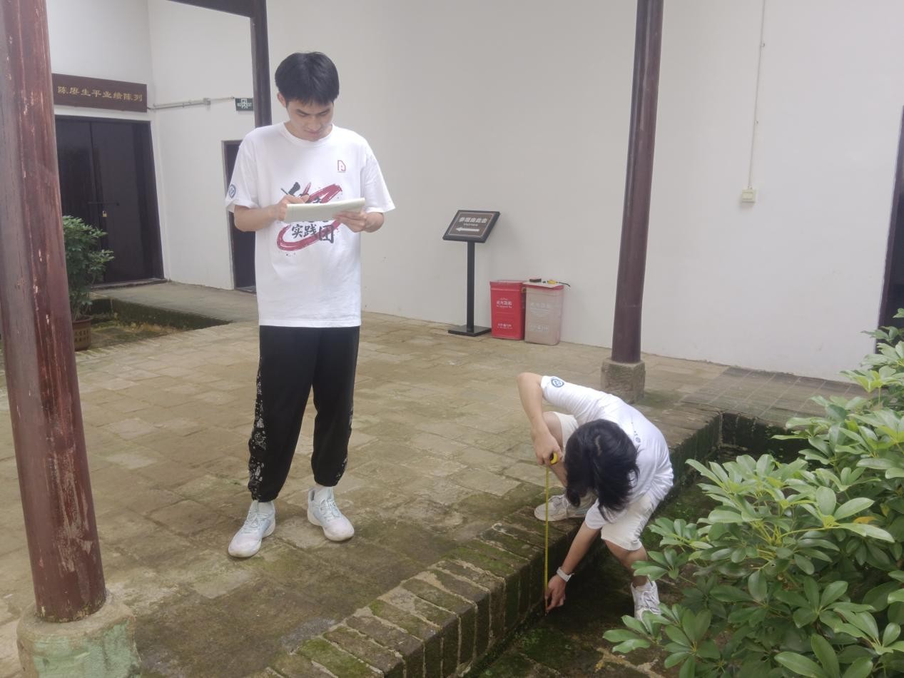 (实践团队对田汉故居中庭的内部空间进行数据采集)