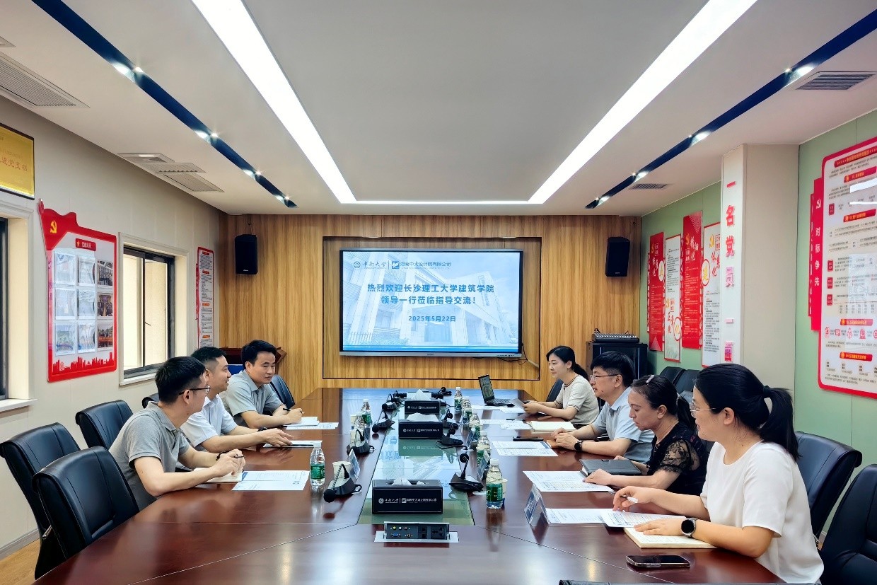 为进一步深化校企合作、强化供需对接,扎实推进“访企拓岗”专项行动与人才培养体制改革,5月22日上午,建筑学院党委书记熊鹰、党委副书记肖义慧、就业专干王宇霖老师一行三人前往湖南中大设计院,开展专项走访调研与合作洽谈工作。此行旨在通过深度交流,精准对接行业需求,为提升人才培养质量、拓宽学生就业渠道奠定坚实基础。湖南中大设计院党总支书记、董事长胡迎新,副总经理龙丽等人参与此次交流。