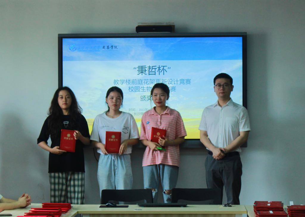 为表彰建院学子在竞赛中取得优秀成果,6月21号下午,“秉哲杯”教学楼前庭花架更新设计竞赛及校园生物寻踪比赛颁奖典礼于16教314召开,此次仪式由王茜老师主持。建筑学院副院长周晨、党委副书记李家春、团委书记王宇霖、风景园林系主任熊辉、长沙秉哲科技有限公司总经理葛可出席。此次颁奖典礼面向建筑学院获奖学生。