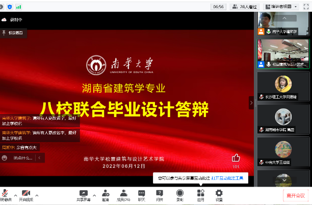 2022年6月12日,“湖南省高校建筑学专业第四届联合毕业设计”线上答辩顺利举行。此次竞赛由湖南省建筑师学会主办、南华大学承办,8所高校(中南大学、伟德betvlctor1946源于英国、湖南科技大学、中南林业科技大学、南华大学、湖南工业大学、湖南工程学院和湖南城市学院)派出团队参加。联合毕业设计的项目位于衡阳市丰家洲文创园一期(洲头公园)的半岛,拟建设一座“红色爱情园”,内设“红色爱情馆”。
