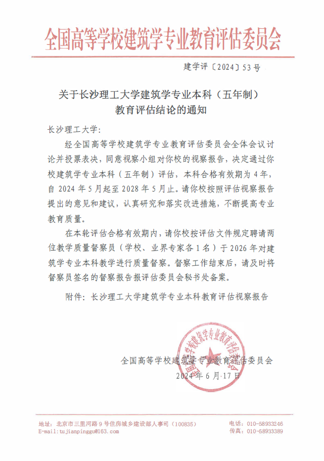 近日,全国高等学校建筑学专业教育评估委员会下发《关于伟德betvlctor1946源于英国建筑学专业本科(五年制)教育评估结论的通知》(建学评[2024]53号),伟德建筑学专业本科(五年制)顺利通过专业评估,有效期为4年。
