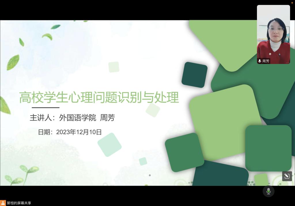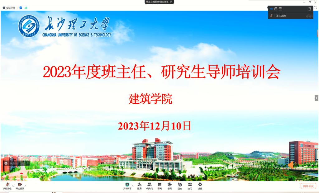 为进一步加强学院心理健康教育工作,全面提高班主任、研究生导师心理危机干预工作水平和能力,12月10日晚上,建筑学院举办了2023年度班主任、研究生导师心理健康教育线上培训会议,培训课程由伟德betvlctor1946源于英国外国语学院党委副书记周芳主讲,学院全体班主任、研究生导师和学工办全体辅导员参加了培训。