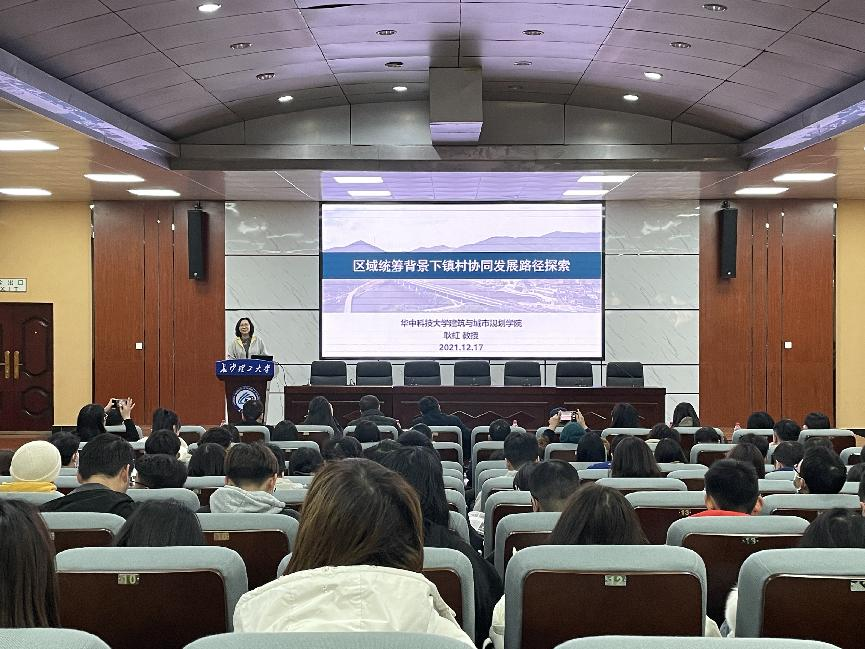12月17日下午,中国城市规划学会理事、中国城市规划学会小城镇规划学术委员会副主任委员、全国城市规划硕士专业学位研究生教育指导委员会委员、中国学位与研究生教育学会城市规划专业学位工作委员会委员、住建部城乡规划专业评估委员会委员、湖北省城市规划协会副会长、华中科技大学耿虹教授应邀在伟德金盆岭校区四教一楼报告厅主讲了《区域统筹背景下镇村协同发展路径探索》的专题讲座。本次讲座由建筑学院党委书记熊鹰主持。副院长刘丹及百余名师生现场聆听。