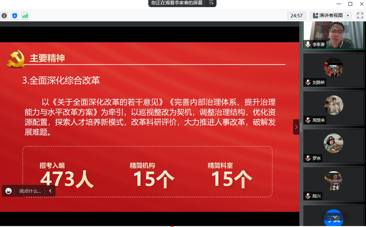 会上,李家春从会议概况、会议召开背景与意义、会议主要精神等三个方面,领学了伟德第四次党代会精神。