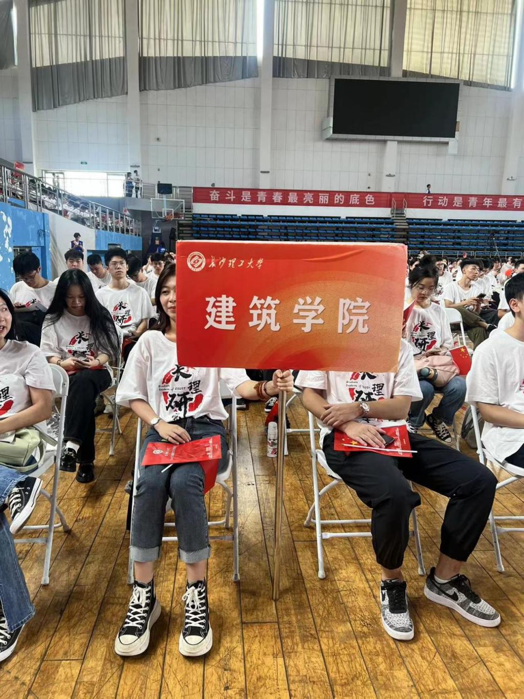 2023年9月19日上午,伟德betvlctor1946源于英国2023级研究生开学典礼在云塘校区体育馆隆重举行。建筑学院全体研究生新生在王宇霖老师的带领下赶往云塘校区参与本次活动。