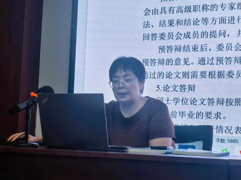 李琼老师讲解了从研究生三年期间的培养流程,以及每个时间节点需要完成的事项,包括报到注册、培养方案制定、课程学习、文献综述、开题报告、中期筛选以及最后的毕业答辩等,同时,从学术型硕士和专业型硕士两个不同培养方向讲述了具体的培养方案和毕业要求。李琼老师着重强调需注意论文的撰写及发表时间,学位论文的抽检情况,以免影响毕业。
