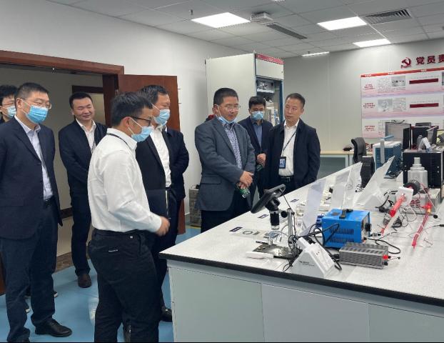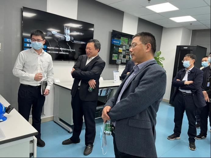 在南网数研院领导及相关技术人员的陪同下,曹一家、曾祥君一行首先来到超高压实验室、研发中心实验室进行调研,深入了解南网数研院在电力专用芯片、智能传感器、网络安全攻击等研发方向的关键技术和代表性成果。