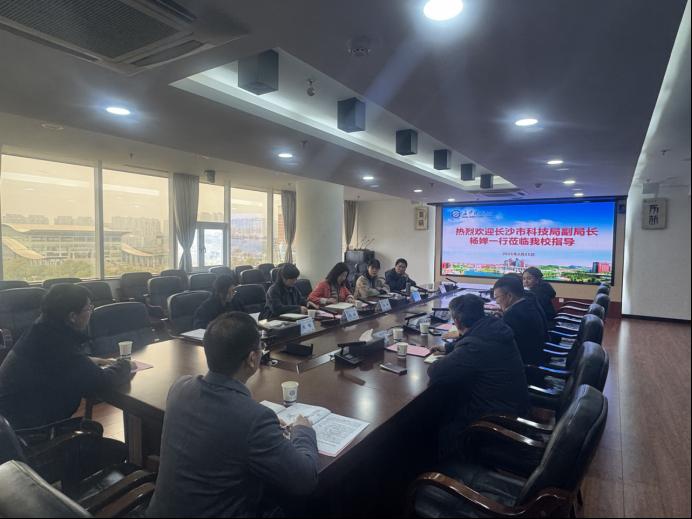 2024年2月25日下午,长沙市科技局党组成员、副局长杨婵一行莅临伟德,就“长沙市杰出创新青年培养计划”及科技研发投入统计工作进行专题调研和指导。校党委委员、副校长张军辉出席会议并致辞,会议由科技处处长胡林主持。
