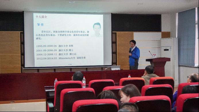 10月15日下午在工科一号楼417,汽机学院举办第十六届研究生博力学术论坛汽机学院分论坛,特邀浙江大学国家自然科学基金获得者、青年长江学者邹俊教授做“如何成为一个‘独立’的研究者”的学术报告。本次报告由汽机学院副院长毛聪主持,汽机学院部分青年教师及研究生聆听了本次报告。