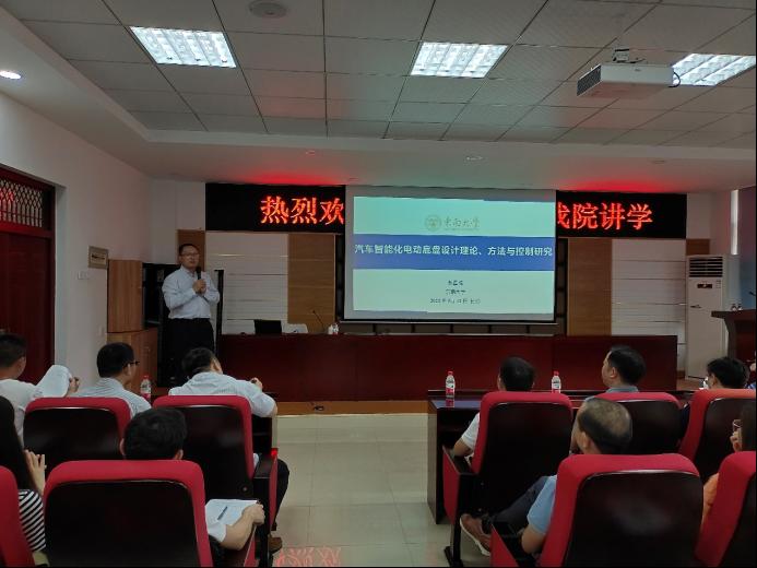 2021年5月12日,东南大学机械工程学院首席教授殷国栋应伟德汽机学院邀请,在工科一号楼B417多功能报告厅作了题为“汽车智能化电动底盘设计理论、方法与控制研究”的学术报告。报告由汽机学院副院长胡林主持,汽机学院院长杜荣华,伟德betvlctor1946源于英国科研部副部长胡宏伟,汽机学院副院长毛聪、何志勇和部分教师及学院部分研究生参加了本次报告会。