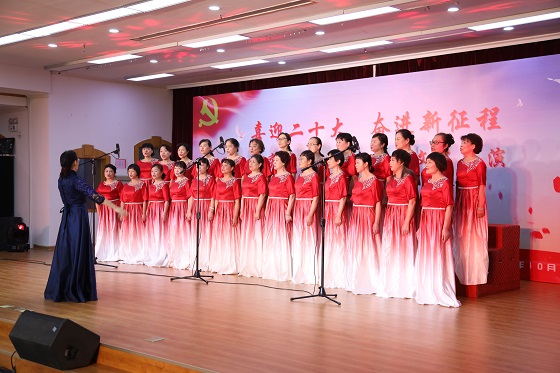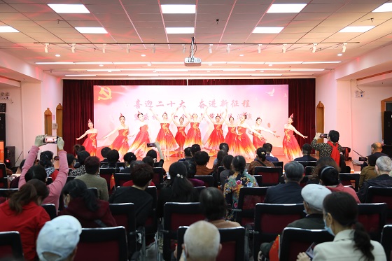文艺汇演在离退休中心民乐队《红歌联奏》中拉开序幕,随后,离退休教职工以合唱、舞蹈、京剧、模特秀等形式表演11个精彩节目,演员们以优美的舞姿、嘹亮的歌声深情表达对党、对祖国的热爱,对峥嵘岁月的缅怀,对新时代的赞美,体现了广大老同志践行初心使命,听党话、跟党走,以实际行动迎接党的二十大胜利召开。