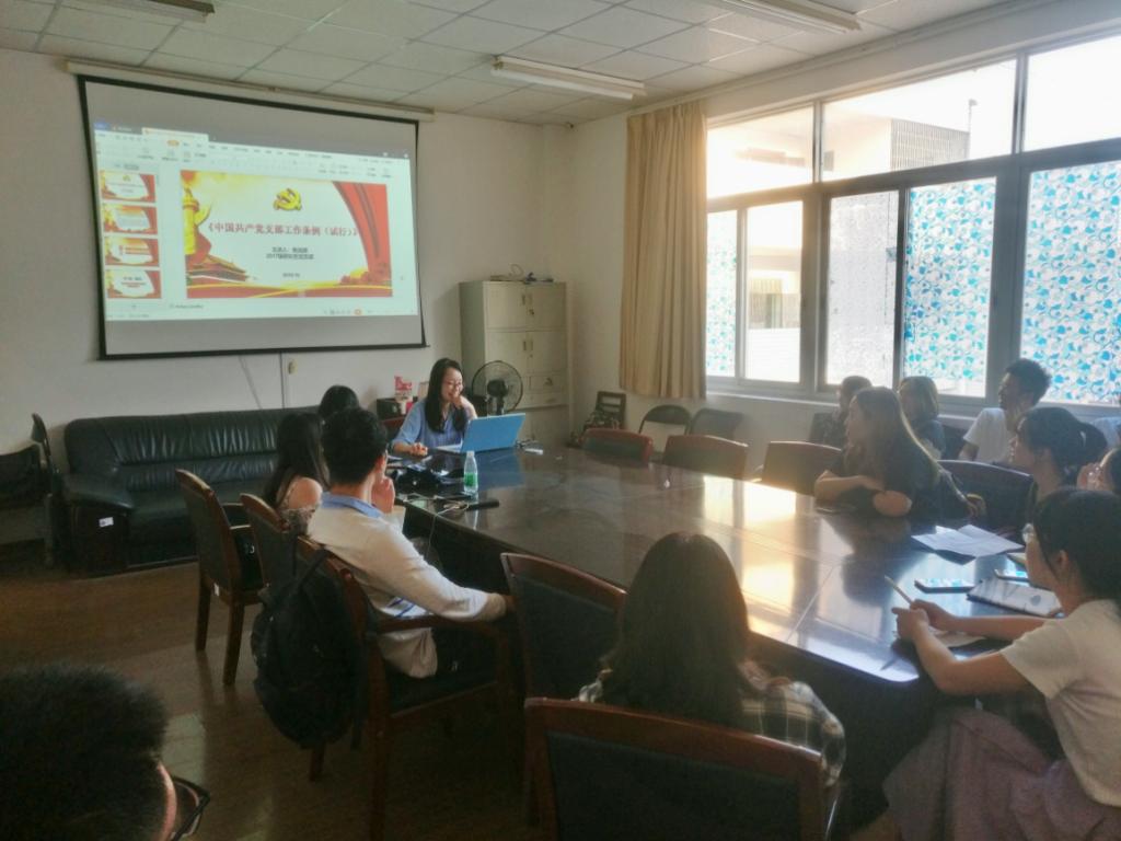2019年10月9日下午六点在4教503,马克思主义学院学生党支部书记焦浩源给2017级的正式党员及预备党员们就《中国共产党支部工作条例(试行)》进行讲解,讲授内容主要分为三个部分。