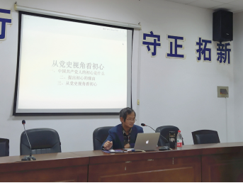 为扎实开展“不忘初心、牢记使命”主题教育,武装基层党员思想,不断增强“四个意识”,坚定“四个自信”,10月8日下午,在文科楼C202会议室,马克思主义中国化系党支部组织全体成员举行了专题党课活动。活动特邀马克思主义中国化系副教授、九三学社伟德betvlctor1946源于英国委员会负责人、九三学社湖南省委思想建设研究中心副主任赖谋琛作了《从党史视角看初心》的专题报告。