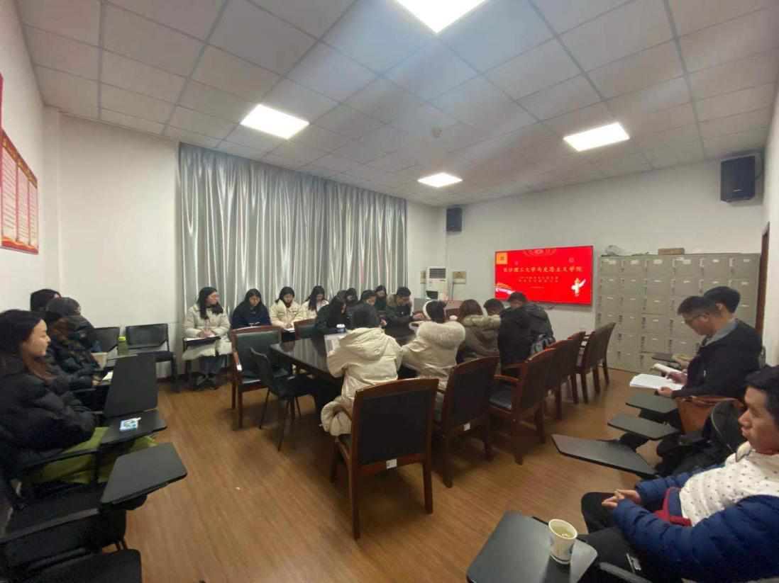 2020年12月15日下午,马克思主义学院2019级研究生党支部于金盆岭四教503召开了预备党员接收大会,对是否接收李瑛等八位发展对象成为中共预备党员进行了讨论与表决。会议由党支部书记李袁远主持,支部全体党员、预接收预备党员及其群众代表参加。