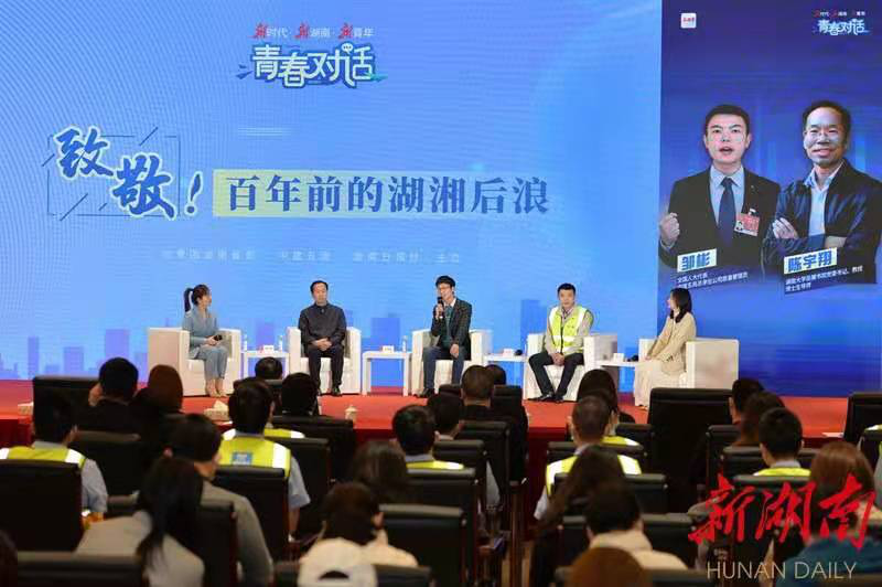 2021年4月2日,由共青团湖南省委、中建五局、湖南日报社联合举办的“新时代·新湖南·新青年”青春对话活动在新湖南大厦举行。我院王威峰老师作为受邀嘉宾与“95后”全国人大代表邹彬等一起分享了湖湘新青年追逐梦想的故事。