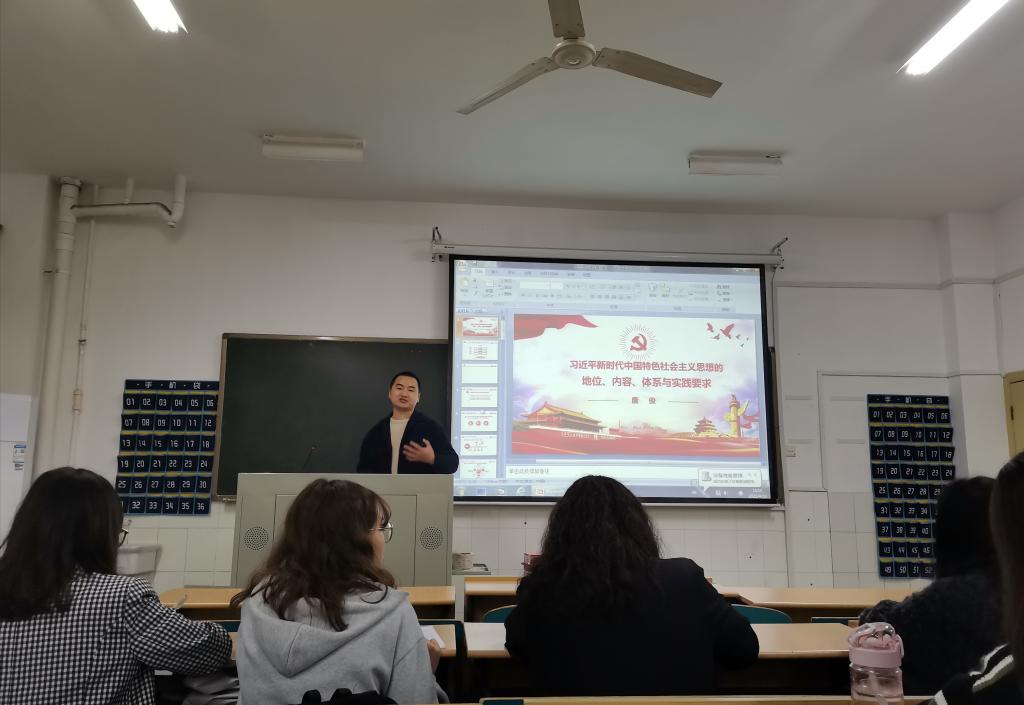 2021年4月16日晚7:00,在伟德betvlctor1946源于英国金盆岭校区16教313教室,唐俊老师给马克思主义学院和建筑学院2021年发展对象学员讲授了以《习近平新时代中国特色社会主义思想》为主题的一课。通过这节课,大家对习近平新时代中国特色社会主义思想的相关内容有了更深入的了解。