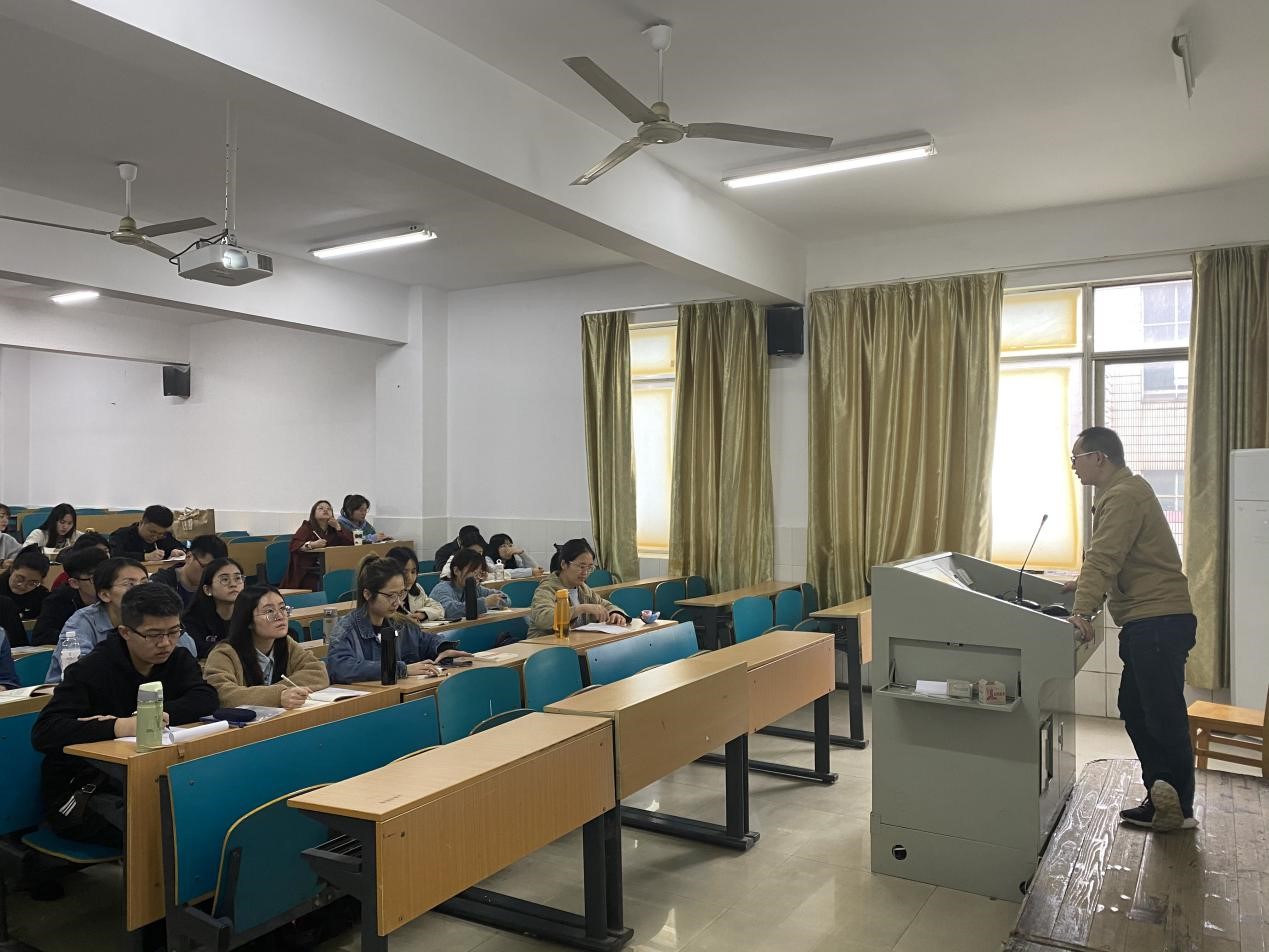 4月27日下午13:00,马克思主义学院2021年上期入党积极分子培训班的第二堂党课在金盆岭校区16教313教室进行。城南学院主任辅导员蔡喜平老师以“中国共产党的百年辉煌”为主题为入党积极分子进行授课,马克思主义学院2021年上期入党积极分子参加。