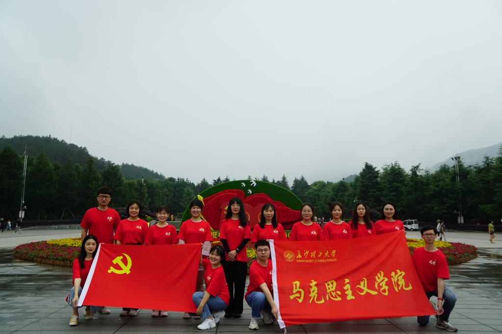 集造化之神秀,萃人文之盛事。在滴水洞的山峰上,望着美丽的大好河山,同学们彼此交流着入党初心。“志愿书中我曾写到要好好学习专业本领建设交通强国,现在我成为了马克思主义理论专业的一名硕士研究生,在新的学科我也将有新的作为。”党员周勇提到。大家畅谈心扉,热情高涨,重新回顾了自己的入党初心和历程。场面激情澎湃,大家倡议在伟人故里放声高歌,表达爱党情怀。“唱支山歌给党听,我把党来比母亲……”“起来,饥寒交迫的奴隶!起来,全世界受苦的人……”“勤劳勇敢的中国人意气风发走进新时代……”这一支支经典歌曲,表达的是同学们坚定理想信念,对党的忠诚和热爱。最后,辅导员老师曾蓓启发大家,初心易得,始终难守,百年奋斗历程艰巨而光辉,青年党员要肩负重任,砥砺前行。