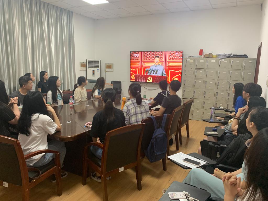 致敬百年征程,礼赞伟大时代。7月1日上午8点,马克思主义学院全体研究生在金盆岭校区4教501、503教室集中观看庆祝中国共产党成立100周年大会直播盛况,共同学习习近平总书记的重要讲话。