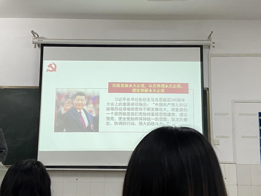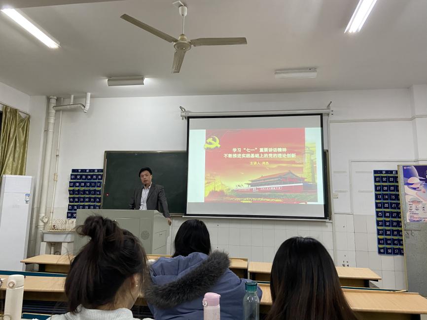 在理论教学课上,肖杰副教授从四个角度为大家阐明了如何在实践基础上推动党的理论创新。首先,以党的理论创新的基本线索为切入点,提出在马克思主义中国化的过程中,时代性、科学性、实践性和人民性是四个始终贯穿其中的线索。其次,回顾了党的理论创新的历史继承历程,指出马克思主义中国化实现的两大历史性飞跃以及由此产生的两大理论成果。再次,从党的理论创新的实践本质的角度出发,带大家深刻领会了习近平总书记“七一”重要讲话的思想内涵。最后,肖杰副教授指出党的理论创新的基本经验就是要坚持理论自信和理论自强的有机统一。