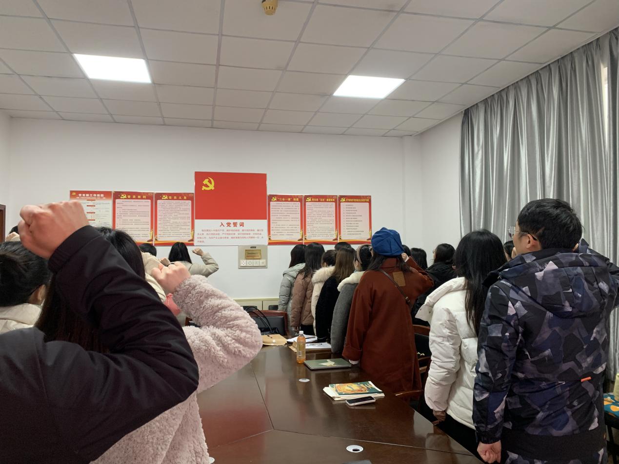 2021年12月14日,马克思主义学院2019级研究生党支部在金盆岭4教举行预备党员接收大会,参加会议的人员为2019级研究生党员、预备党员和发展对象。