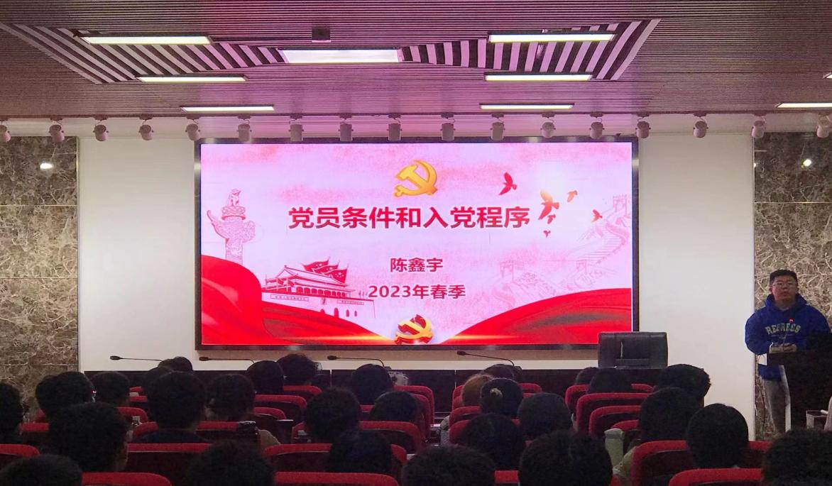 2023年4月27日晚19:00,在云塘校区理科楼B413,文学与新闻传播学院的陈鑫宇老师给本次入党积极分子培训班的学员们讲授了主题为《党员条件和入党程序理论课》的一课。本次培训马克思主义学院全体入党积极分子参加,党员代表万雨晴负责监督。