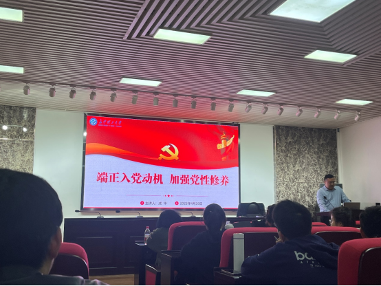 2023年4月26日晚,马克思主义学院2023年上期发展对象培训班第一次党课在理科楼B413进行。成华老师担任本次课程的主讲老师,14名发展对象参与课程,徐浩、胡澜两名党员同志负责监督。