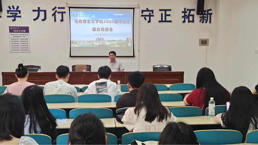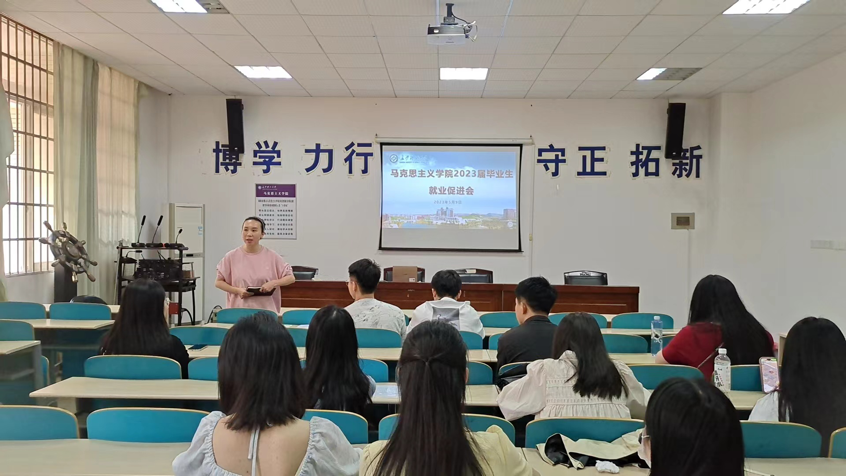5月9日上午,马克思主义学院2023届毕业生就业工作促进会在文科楼C202如期举行,本次会议以线上线下相结合的方式召开,会议由辅导员曾蓓主持,院长张明海及2023届全体毕业生参加会议。