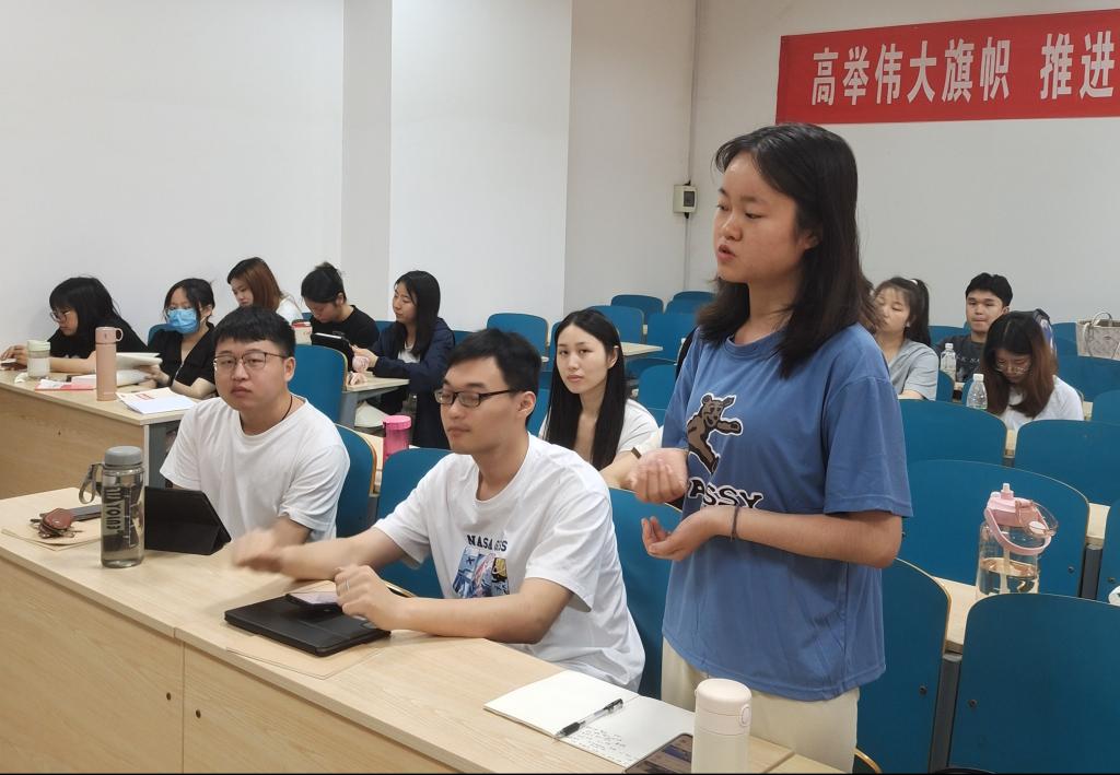 第一环节,六个学习小组分别围绕“坚持人民至上”、“当代青年要在实现民族复兴的赛道上奋勇争先”、“弘扬中华优秀传统文化、增强文化自信提供坚强支撑”、“努力建设人与自然和谐共生的现代化”、“做到学史明理、学史增信、学史崇德、学史力行”、“全面贯彻新时代人才工作新理念新战略新举措”六个主题,认真研读《习近平谈治国理政》第四卷中的相应部分,并讨论各自的心得体会。在理论学习过程中,现场气氛十分活跃,同学们将课前准备的学习资料、学习视频主动分享给大家;在组内讨论过程中,每一位学员都认真思考,踊跃讨论,积极表达自己的观点和看法。