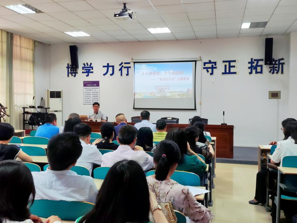 为进一步提升广大教职工安全意识和避险逃生能力,为实现“三坚决两确保”目标营造浓厚的宣传舆论环境,2023年6月6日下午,马克思学院于文科楼C202召开“安全生产月”主题教育活动,会议由院长张明海主持,党委书记陈万球做主题教育发言,全院教职工参加本次会议。