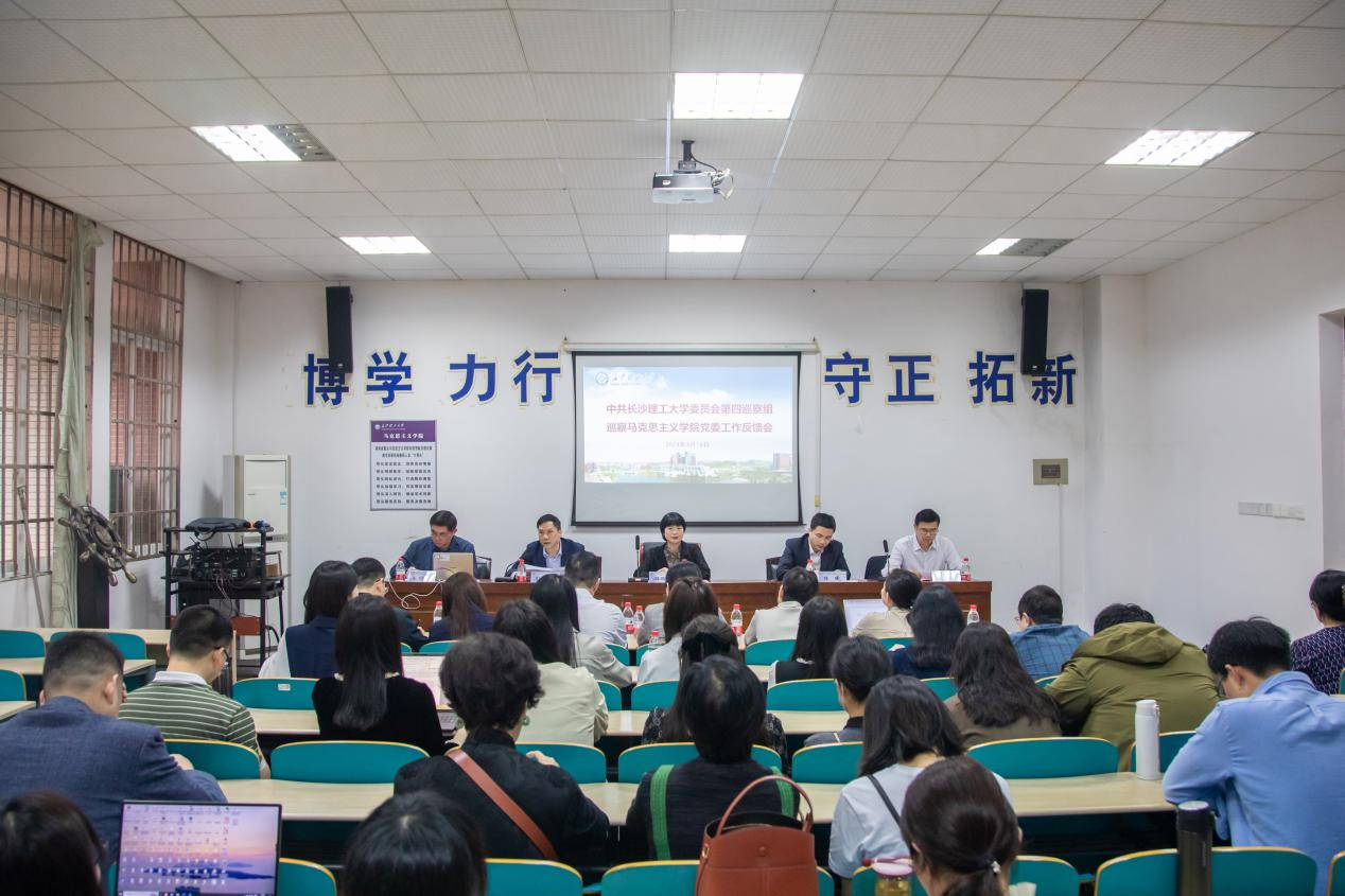 根据学校巡察工作领导小组统一部署,4月16日下午,学校党委第四轮校内巡察第四巡察组巡察马克思主义学院党委工作反馈会在云塘校区文科楼C202室召开。校党委委员、副校长蒋璟萍、校党委组织部常务副部长陈曦、校党委第四巡察组组长彭玉楼、副组长刘卓明、联络员李娟以及马克思主义学院全体教职工参加会议,会议由院长张明海主持。