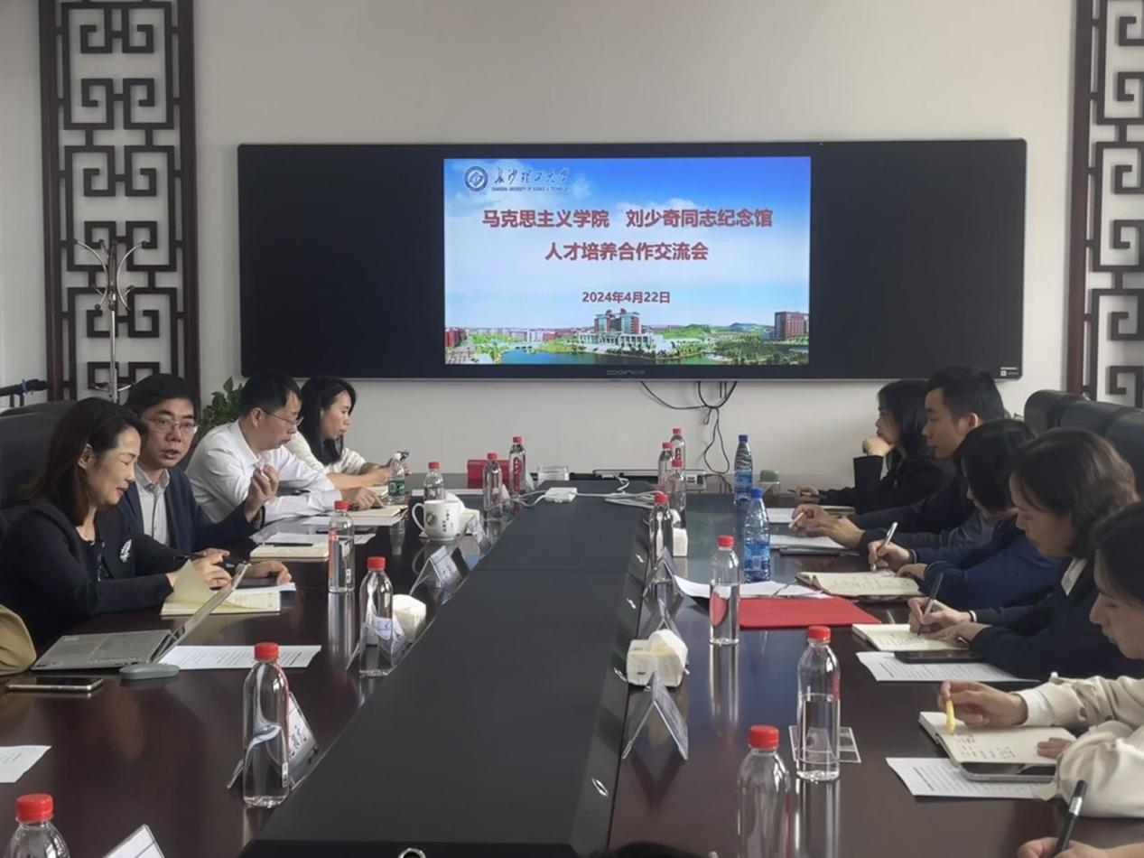 会上,张明海对刘少奇同志纪念馆领导专家的到场表达感谢,同时对学院学科建设、教学管理、研究生的培养情况、综合素质、就业方向等进行介绍。接着,刘少奇同志纪念馆副馆长熊学爱介绍了刘少奇同志纪念馆的基本情况、特色项目、发展方向和人才需求等。双方围绕研究生研学、实习、志愿活动等人才培养合作事宜进行深入交流。